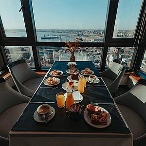 Mientras disfruta de su comida, disfrute de las impresionantes vistas panorámicas de la ciudad desde nuestro piso 25, lo que hará que su experiencia de desayuno sea aún más memorable.